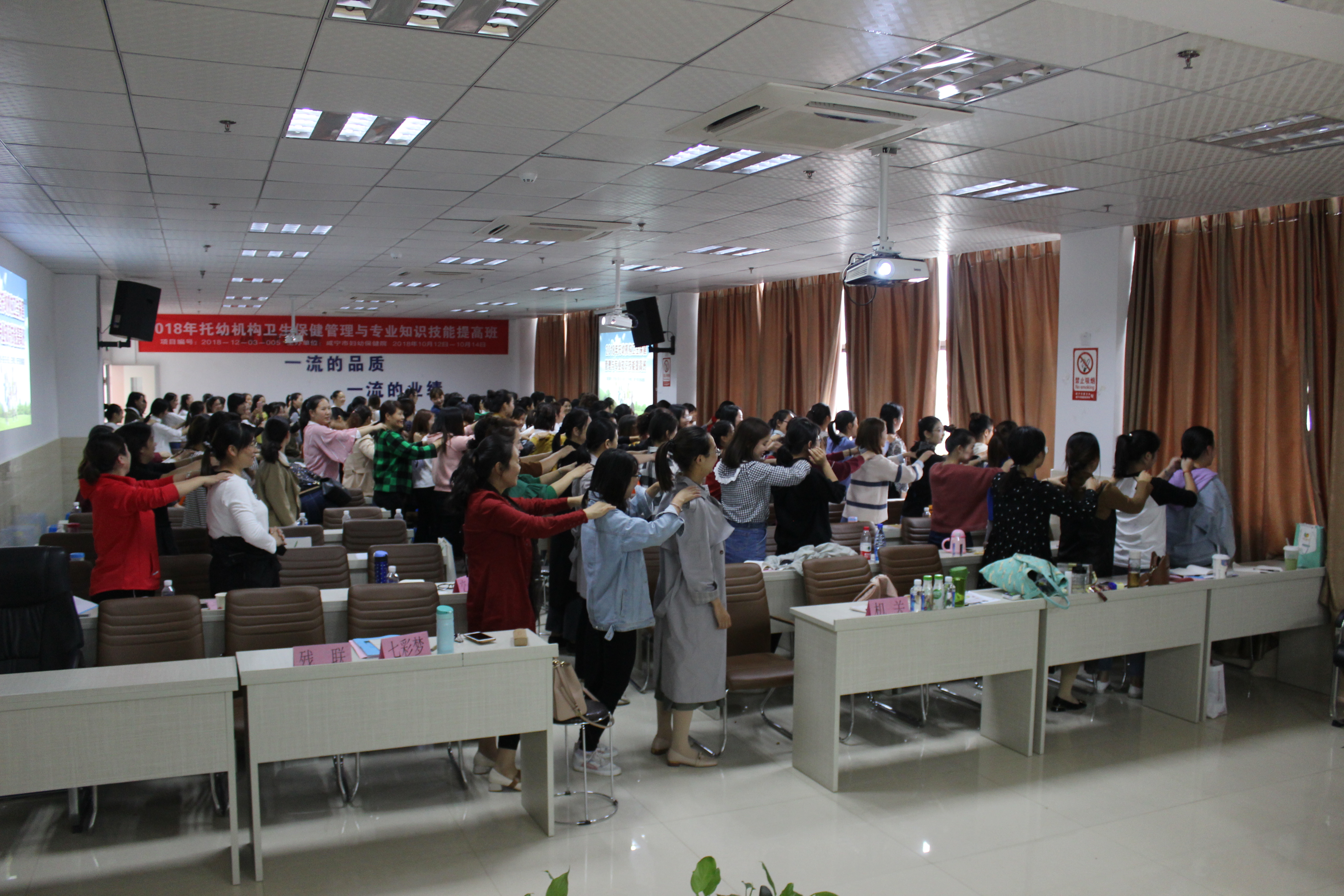 为加强托儿所、幼儿园卫生保健工作,切实提高托幼机构卫生保健工作质量。为集体儿童创造良好的生活环境,预防控制传染病,降低常见病的发病率培养健康生活习惯,保障儿童身心健康。我院于10月12——14日在11楼多功能会议室举办了2018年托幼机构卫生保健管理与专业知识技能提高班。来自咸宁各县(市区)及城区的儿童保健工作者、托幼机构园长、分管园长、保健医生、老师及保育员等400多人参加了这次提高班培训。